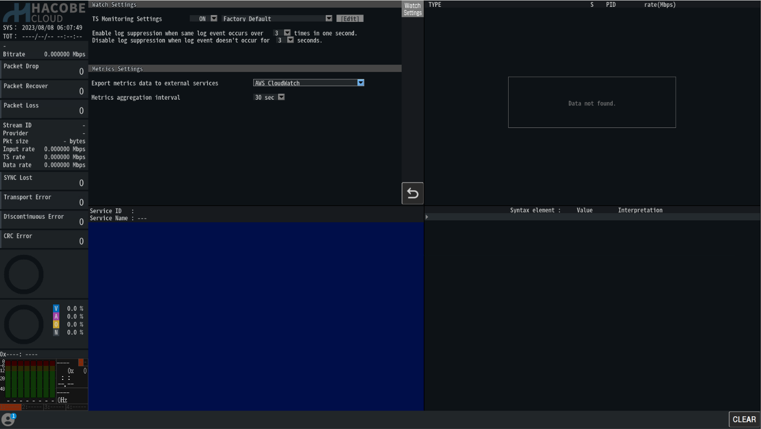 Metrics sent from HACOBE-CLOUD can be used to visualize graphs, error information, etc. in the CloudWatch dashboard.